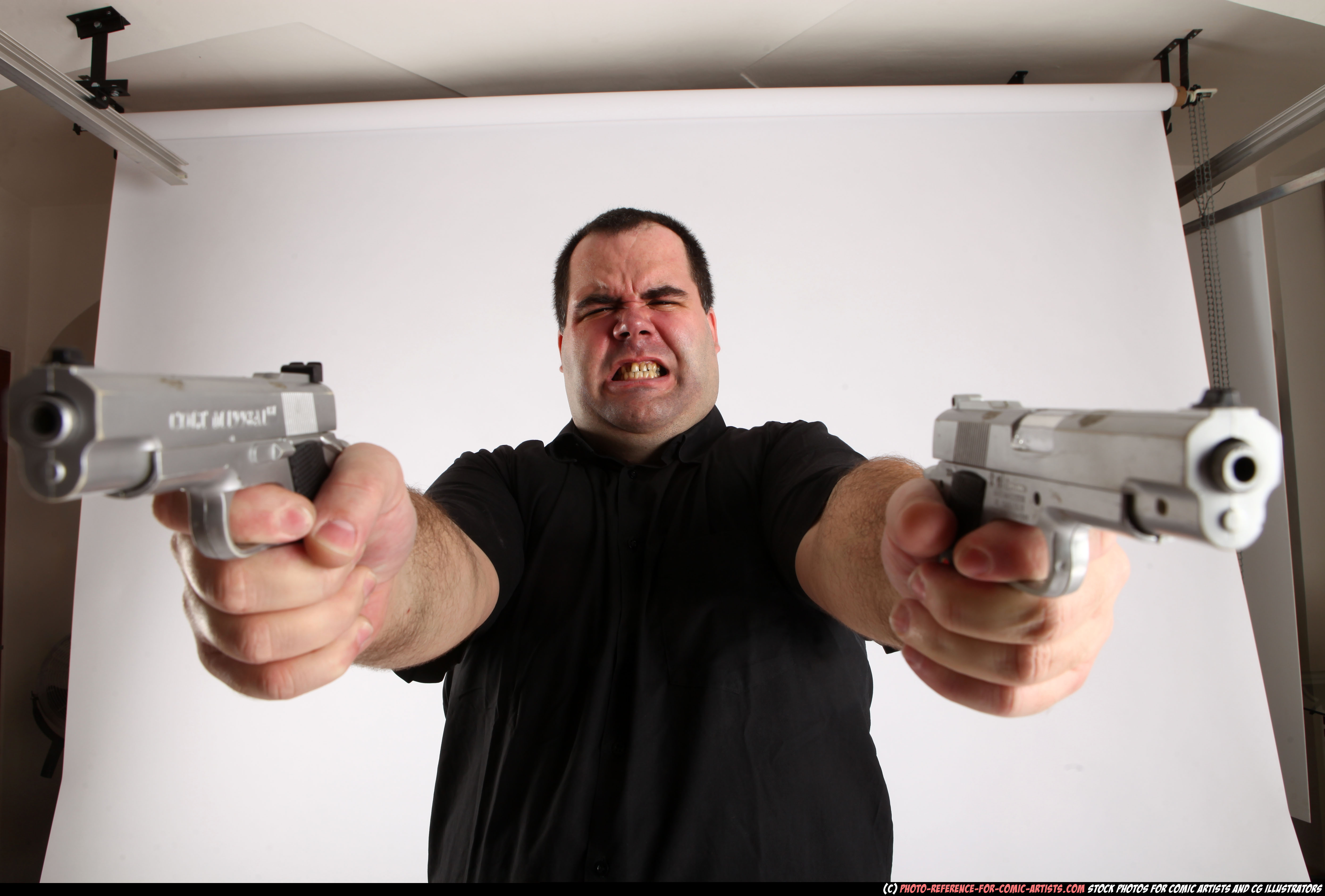 Comic Artist - Furious Mobster Shooting Dual Guns